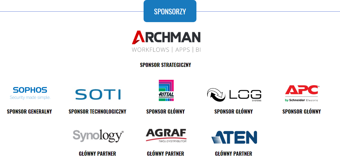 Wśród prelegentów m.in.: Michał Kurek – Partner w KPMG, Dariusz Gałęzowski – Dyrektor architektury IT – PKO BP oraz Artur Kurasiński. Sponsorem Strategicznym wydarzenia została firma Archman, a pozostałymi partnerami eventu są: Sophos, SOTI, Rittal, LOG Systems, APC by Schneider Electric, Synology, Agraf, Aten. Sprawdź kto jeszcze znalazł się w gronie wystawców: http://itfuture.pl/#sponsors i nie zapomnij o konieczności odrębnej rejestracji na kongres: http://itfuture.pl/rejestracja-na-kongres/